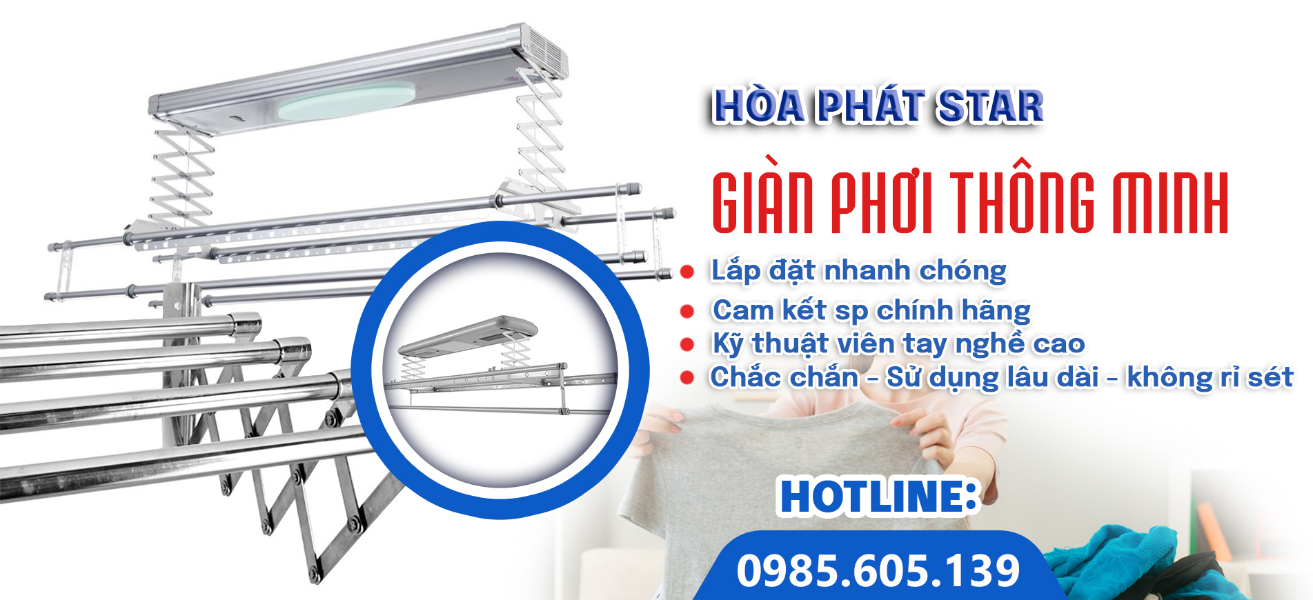 MÔ TẢ: Giàn phơi điều khiển Hoà Phát Star Model 2024 là sản phẩm tiên tiến, được thiết kế để mang lại sự tiện lợi và hiện đại cho không gian sống của bạn. - Tặng kèm 2 bộ dây cáp để thay tại nhà phòng khi dây cáp đi kèm hư...