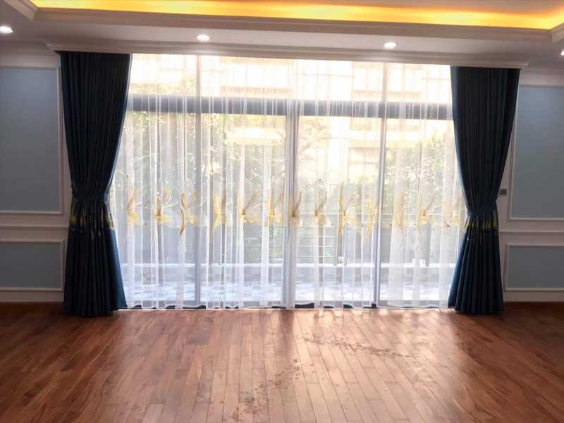 Đối với các không gian có diện tích phòng khách tương đối rộng các bạn có thể sử dụng các loại rèm vải, kết hợp thêm một lớp vải voan trang trí ở bên trong để thuận tiện cho việc lấy sáng, khiến cho căn phòng hài hòa lãng mạn hơn.