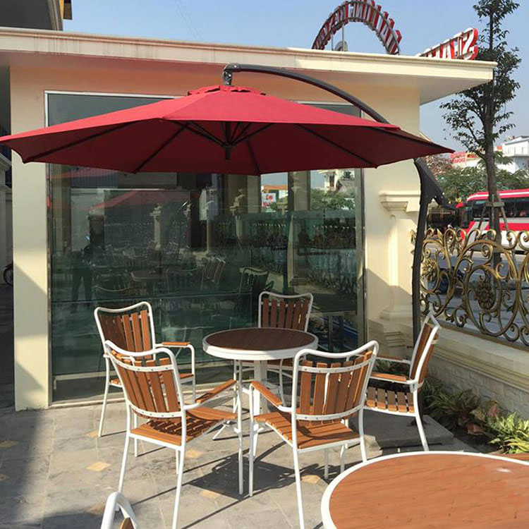 Trên thị trường hiện nay các khu resort nghỉ dưỡng, các quán café, nhà hàng đều sử dụng các loại ô lệch tâm cách điệu nó giúp làm nổi bật không gian riêng của quán.