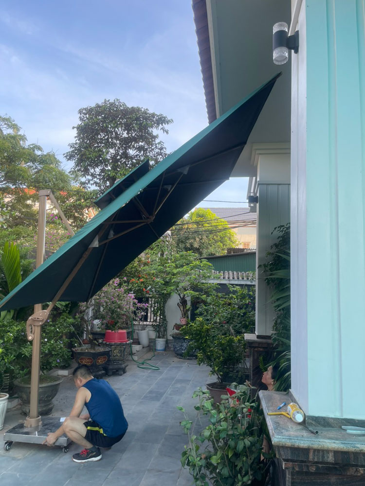 Ô lệch tâm tròn dùng để trang trí sân vườn bạn có thể xoay và điều chỉnh mọi hướng, nấc xoay 360 độ giúp bạn dễ dàng điều chính theo hướng nắng một cách thoải mãi và mang đến khả năng che nắng hoàn hỏa nhất, bạn có thể điều chỉnh ô nghiêng theo ý muốn mà không cân mất thời gian để dịch chuyển cả chân đế của ô.