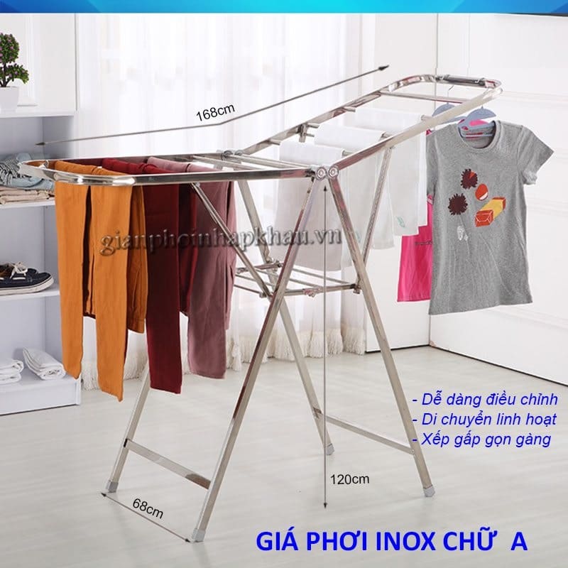 Giàn phơi di động chữ A là một trong các loại giàn phơi bán chạy nhất trên thị trường hiện nay giá cả phù hợp,chất lượng mà tiện dụng được rất nhiều chị em nội trợ tin dùng. Với thiết kế gọn gàng,tiện lợi và chắc chắn, sử dụng chất liệu inox cao cấp. Tạo cho giàn phơi chữ A có những ưu điểm độc đáo, khác biệt hoàn toàn mà các loại giàn phơi khác không có được.