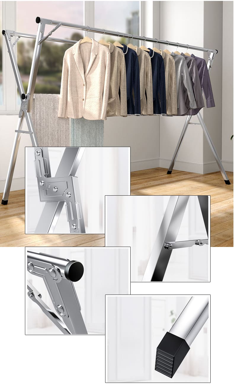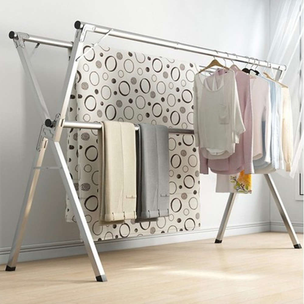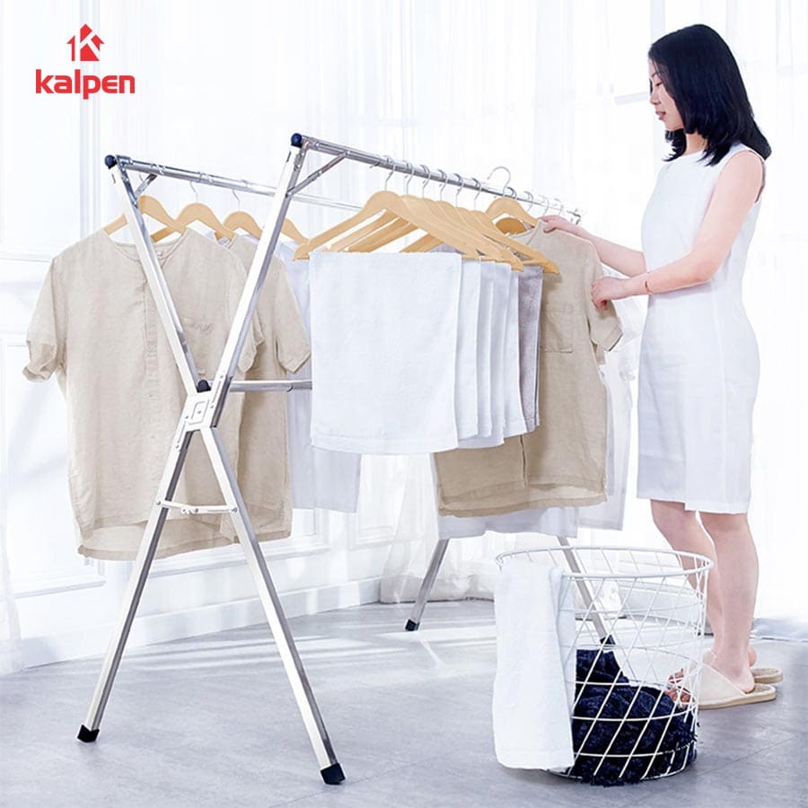 - Thiết kế khung hình chữ X theo nguyên lý cơ học, cho khả năng chịu lực tốt hơn khi phơi khăn,màn, chăn, quần áo.