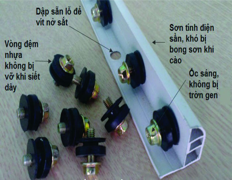 - Khu vực lắp đặt là lan can thép, inox, sắt đặc, khung thép hộp bạn sẽ dùng ốc vít đầu dù tự khoan để bắt thanh nẹp.
