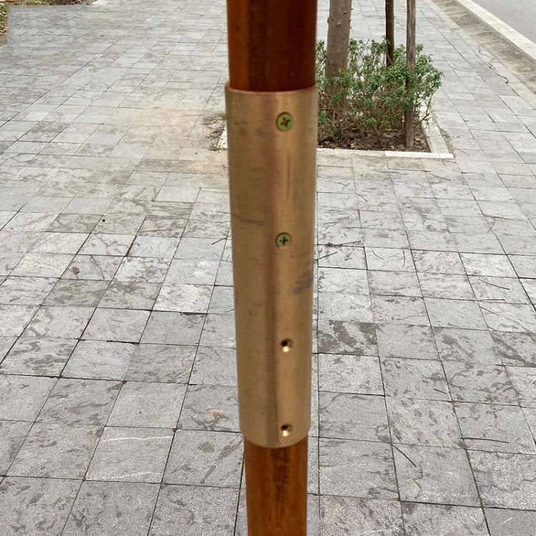 - Thân ô dù làm bằng gỗ, ô dù chính tâm gỗ có dây ròng rọc trên thân điều chỉnh độ mở của ô.